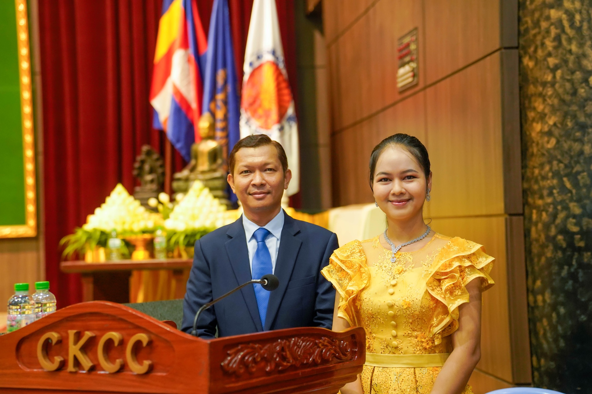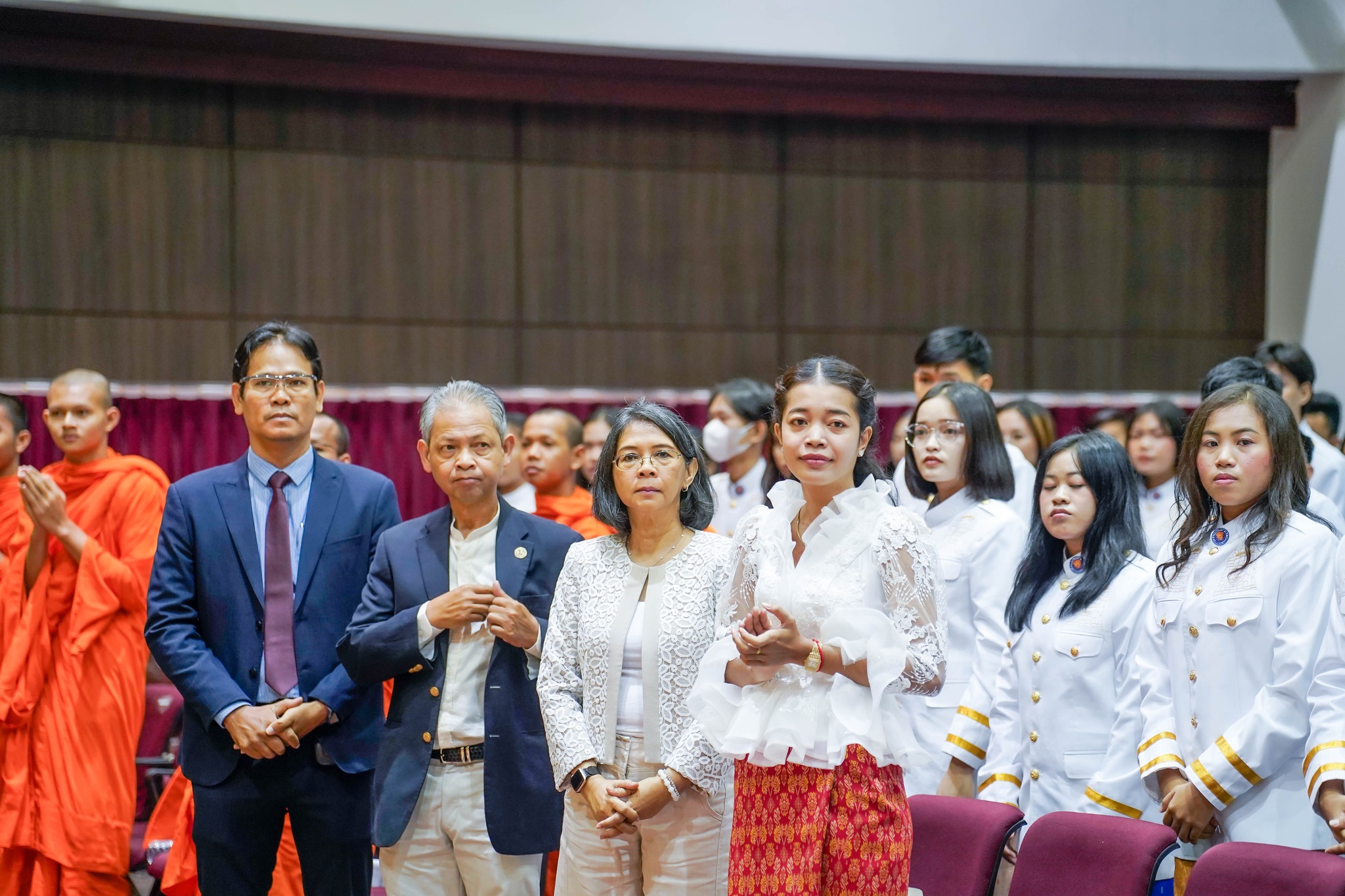 The distinguished ceremony was graced by the presence of esteemed guests, including Samdech Preah Dhammalikheta, Dr. Sao Chanthol, Royal Councilor and Supreme Councilor of the Mahanikaya of the Kingdom of Cambodia; Dr. Kol Pheng, Founder and President of Paññāsāstra University of Cambodia and Paññāsāstra International School; H.E. Veng Sereyvuth, Chairman of the Board of trustees of Paññāsāstra University of Cambodia; and H.E. Dr. Korm Ribaun, Senior Vice President of PUC-IFL & University Relations.