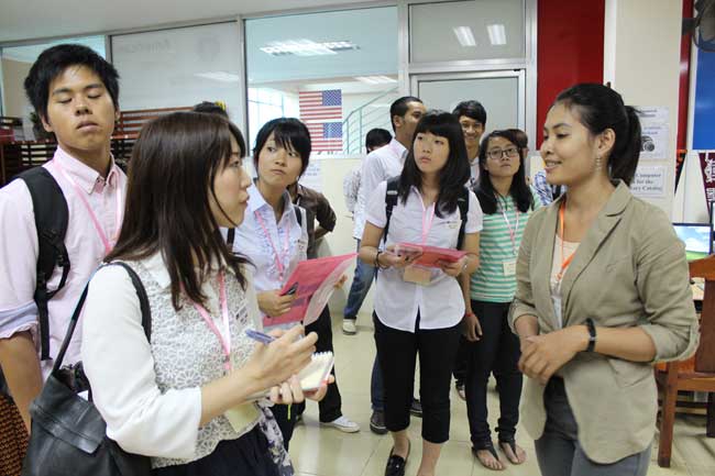 A  delegation of six students from the Japanese Youth Goodwill Mission(JYGM) visited PUC on September 12, 2013 to learn about the university’s academic program and other community services in Cambodia.