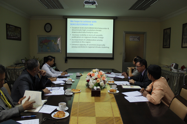 to introduce SEACLID/CORDEX Southeast Asia.  SEACLID (Southeast Asia Climate Downscaling Experiment) was recently incorporated into CORDEX (Coordinated Regional Climate Downscaling Experiment), a project of the World Climate Research Programme.  Dr. Tangang came to discuss how PUC can become involved in the project, and to provide opportunities for Cambodian students to pursue a Master of Sciences or PhD at NUM.