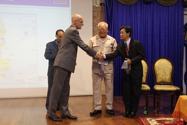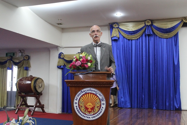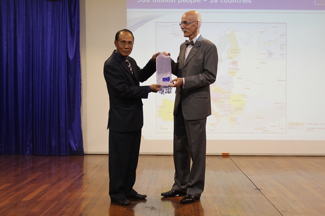 To get started, Mr. Ambassador presented EU background and how it works in the world; especially in Cambodia. After his presentation, Mr. Ambassador allowed audiences to ask questions regardless political issues. It was a lively discussion between Mr. Ambassador and the students. There was also a group photograph at the end.