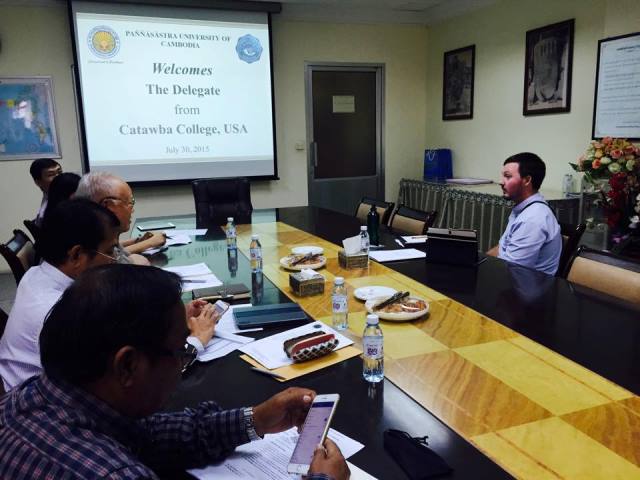 After the last meeting with a few PUC students and discussion with Prof.Chiv Rattha, Dean of Faculty of Tourism and hospitality, entrepreneurship, on July 30, 2015, Dr. Phillip M. Frank, a delegate form Catawba College, USA visited Paññāsāstra University of Cambodia (PUC) to explore possible collaborations between the two institutions.